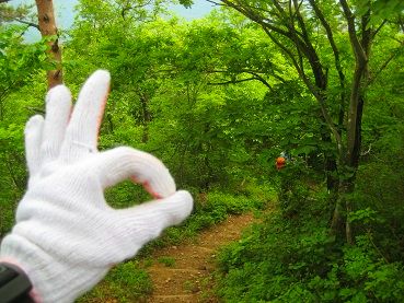 細い登山道のど真ん中に平行で(沿ってて)、しかもこの同系色。