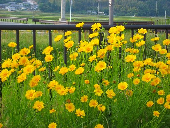 湖周道路の両サイドにずーっとこの黄色い花が続いていた。
