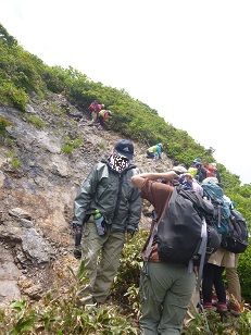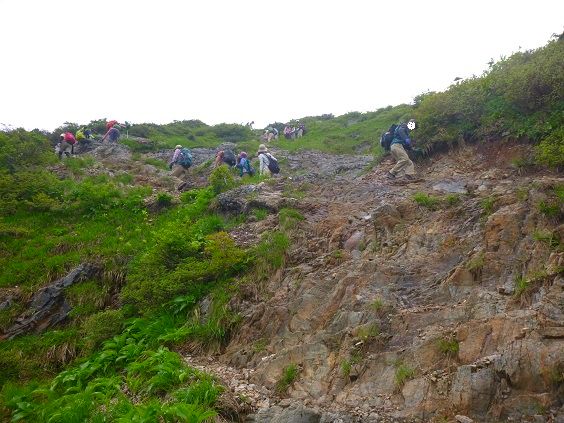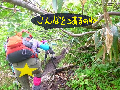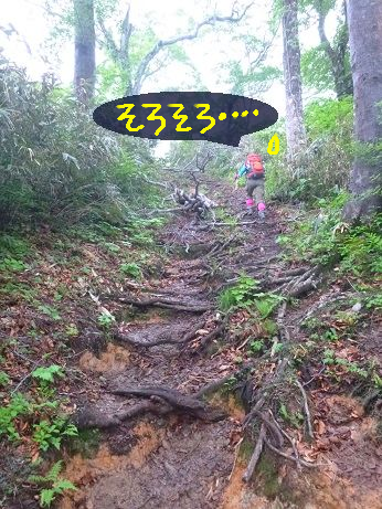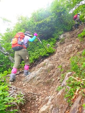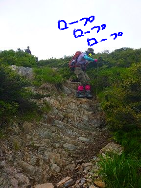 ↓このお山の至れり尽くせりの登山道には珍しい難所