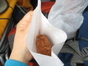 ↓南條のサービスエリアで買ったエビコロッケ3つ