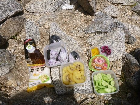 ↓稜線直下にきてほっとしたところできゅうり休憩
