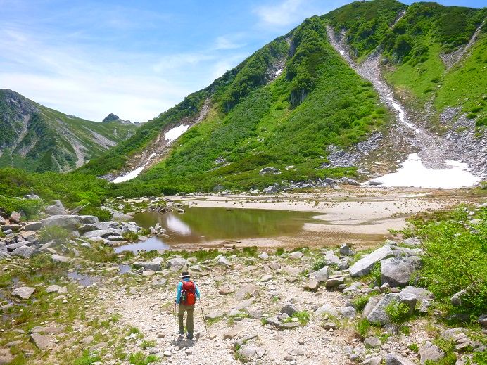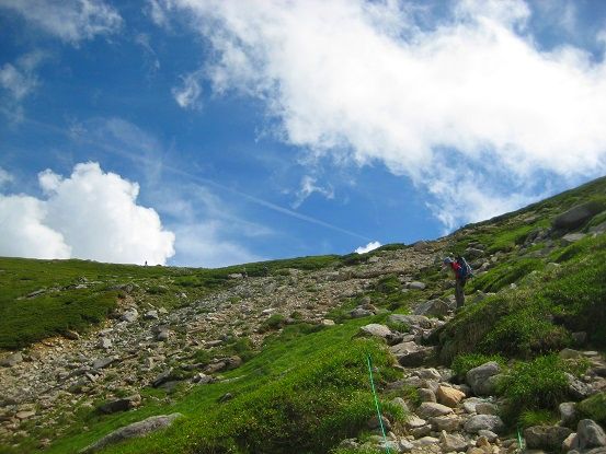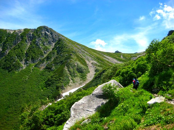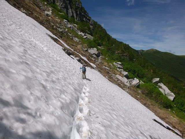 最初の雪渓は雪解けがすすんでてなんとか回避できた。