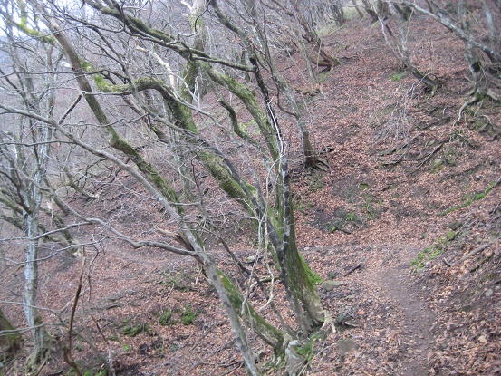 ↓林道からみた山肌