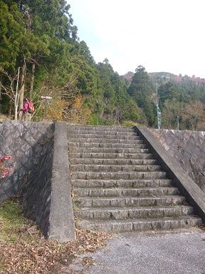 ↓駐車場奥のこの階段を上がって左へ。