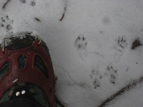 積雪時に知らずに?夏道使った人がいて