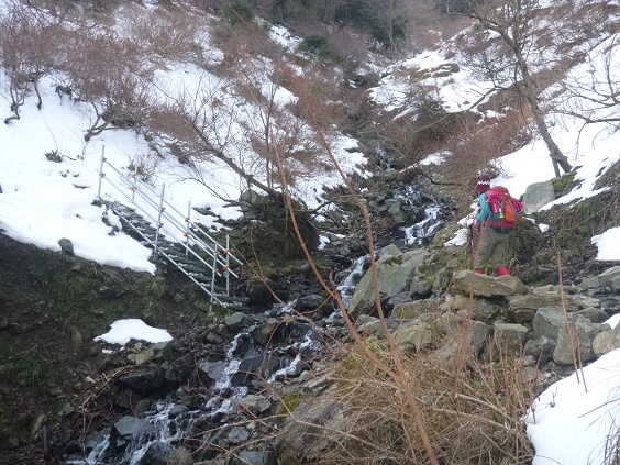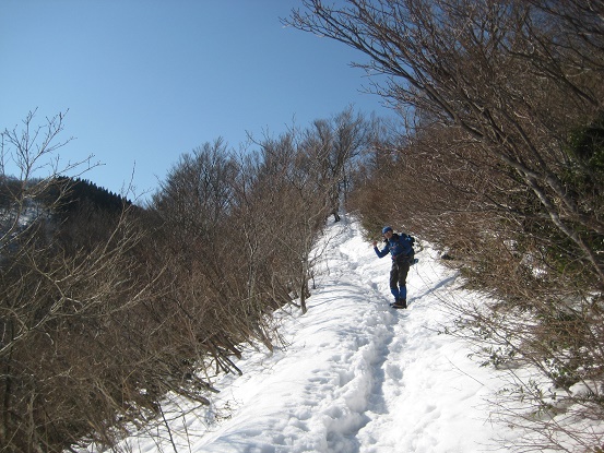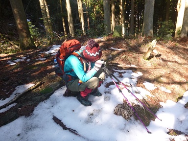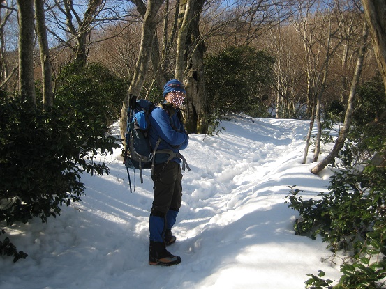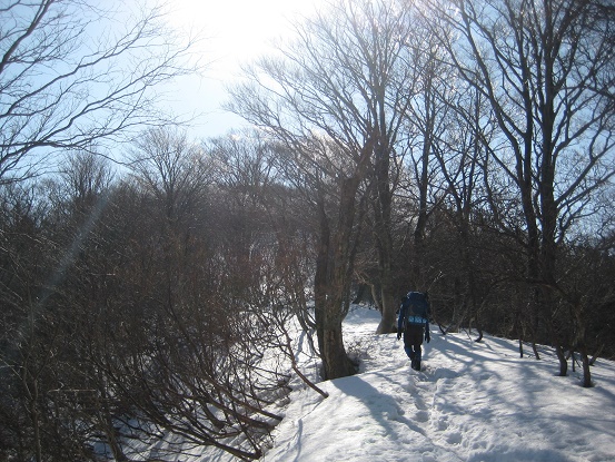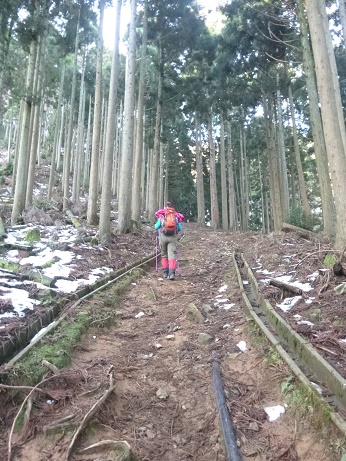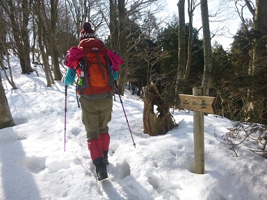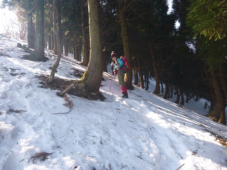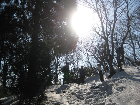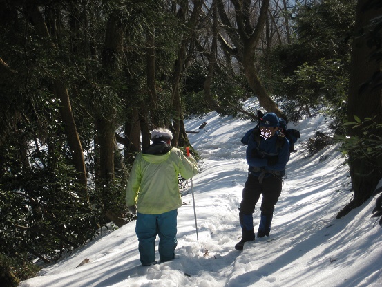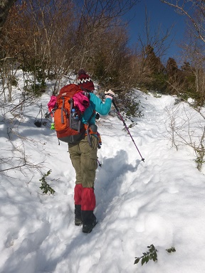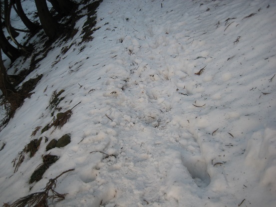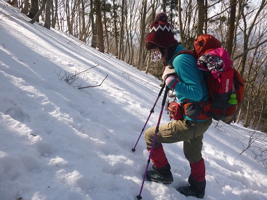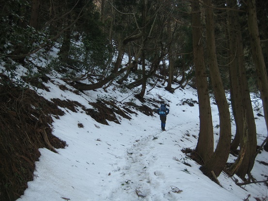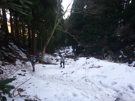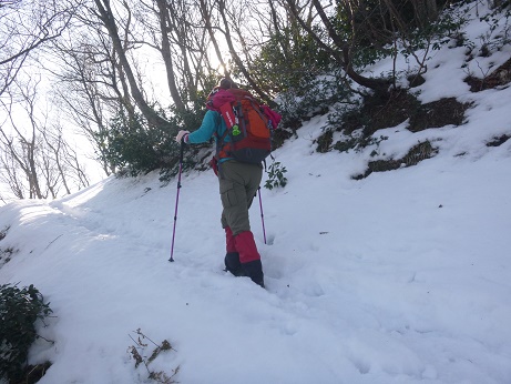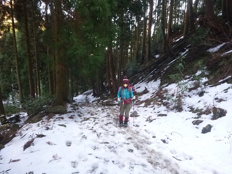 冬道を登る。