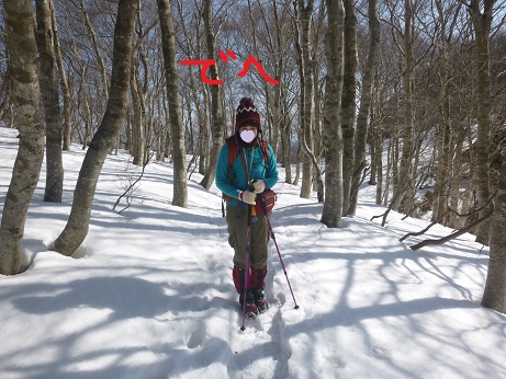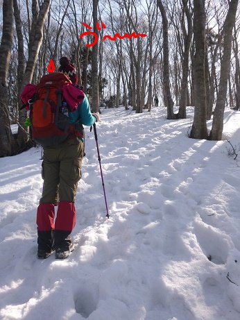 白服おばさま「雪を楽しんでゆ~っくり登るべきよ~」