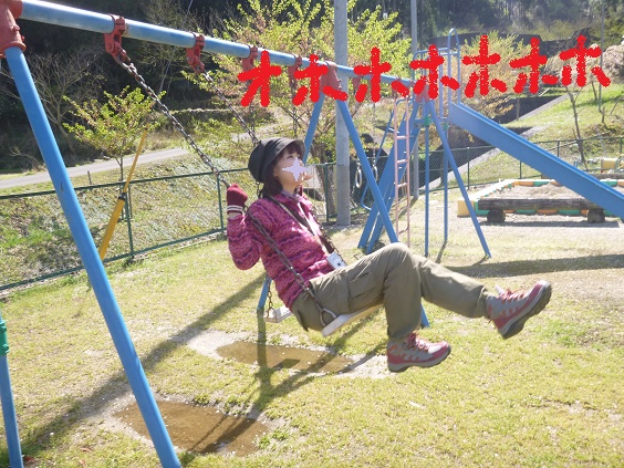 ブランコって、太ももの筋力必要で、意外にキツイのよね。(>_<)